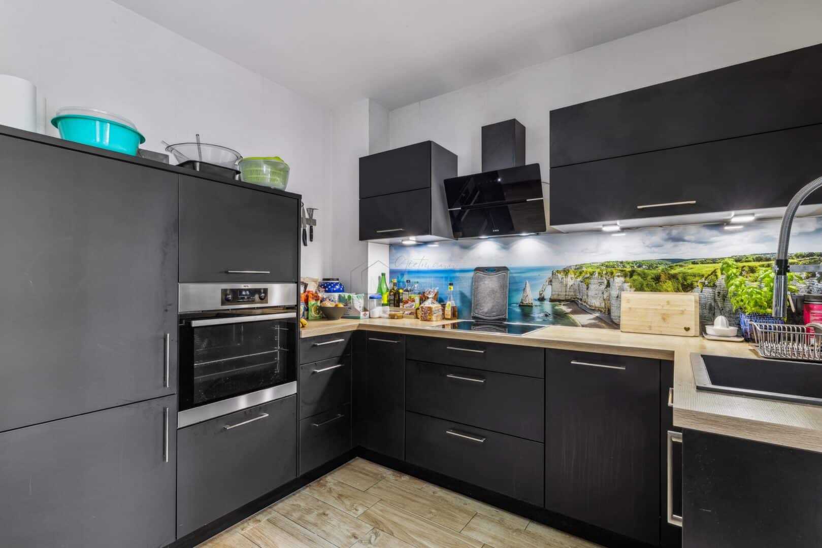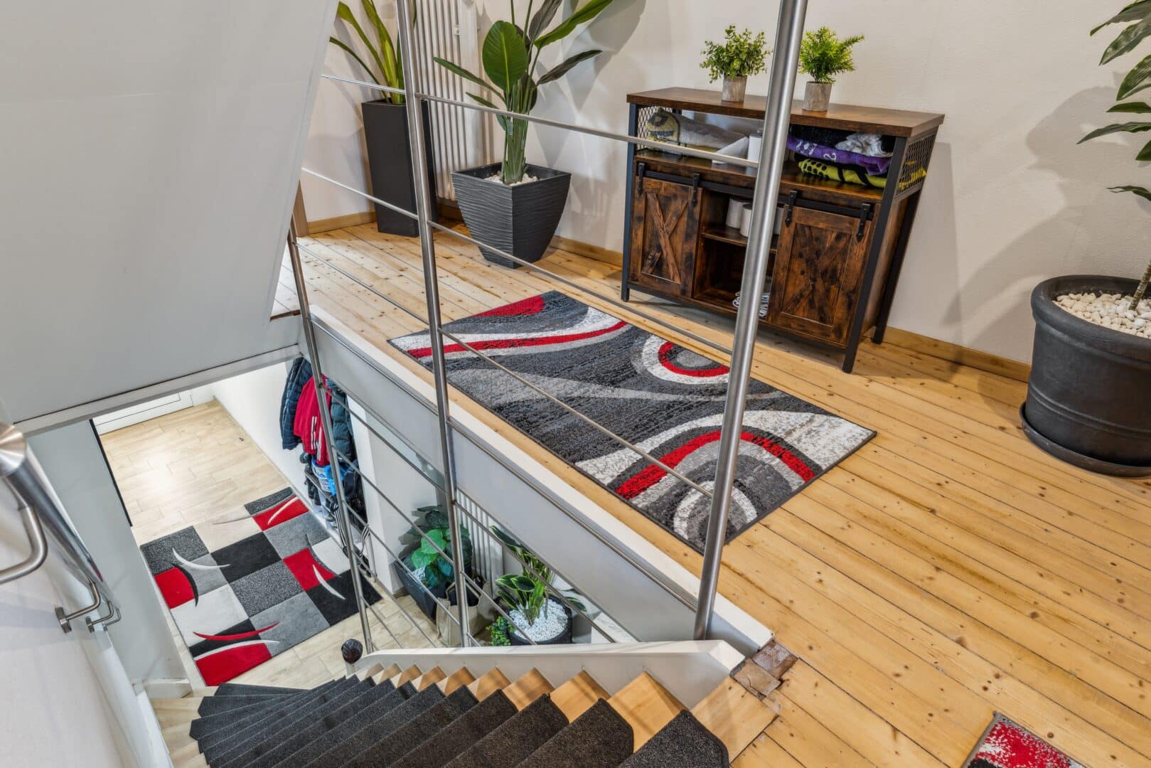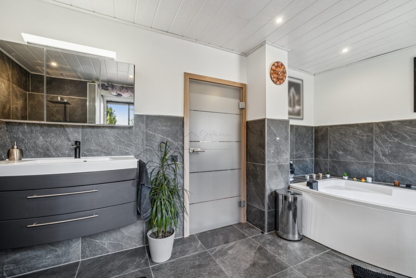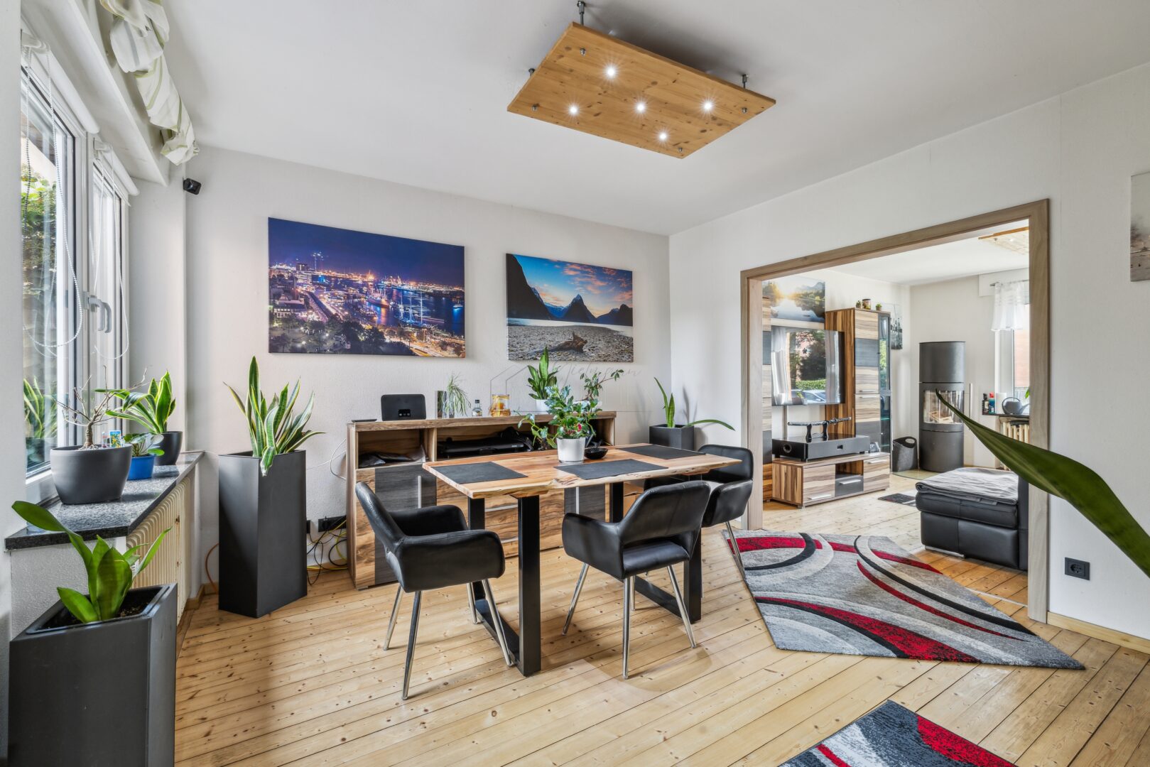 Die Ausstattung des Hauses lässt keine Wünsche offen: Das Badezimmer wurde 2023 vollständig saniert und bietet sowohl eine ebenerdige Dusche als auch eine Badewanne. Eine hochwertige Einbauküche (2020) ist im Kaufpreis enthalten. Für angenehmes Raumklima sorgen ein Kaminofen (7 kW, Baujahr 2020) sowie zwei Klimaanlagen im Obergeschoss (2022). Elektrische Rollläden (GIRA, 2019), moderne Elektrik (überprüft 2019), aufbereitete Holzböden und Fliesen (2019) ergänzen die hochwertige Innenausstattung. Die Haustür aus Aluminium (2022) bietet dank dreifacher Verriegelung, Schall- und Wärmedämmung zusätzliche Sicherheit und Komfort. Kunststofffenster mit 2-fach Verglasung und integrierten Fliegengittern (1999) sind ebenfalls vorhanden.