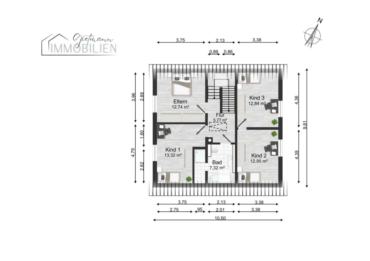 Mit einer Wohnfläche von ca. 156 m² und zusätzlichen 18 m² an Nutzfläche überzeugt das Haus durch eine durchdachte Raumaufteilung: Im Erdgeschoss erwartet Sie eine großzügige und offene Kombination aus Kochen und Essen (ca. 24,3 m²), ein heller Wohnbereich (ca. 21,7 m²), ein Schlafzimmeer/Büro sowie ein Gäste-WC (mit Dusche), Hauswirtschaftsraum und Abstellflächen. Im Obergeschoss befinden sich vier Schlafzimmer sowie ein modernes Badezimmer – ideal für Familien mit mehreren Kindern oder zusätzlichem Platzbedarf für Homeoffice oder Gäste. Der Spitzboden bietet zudem praktischen Stauraum.