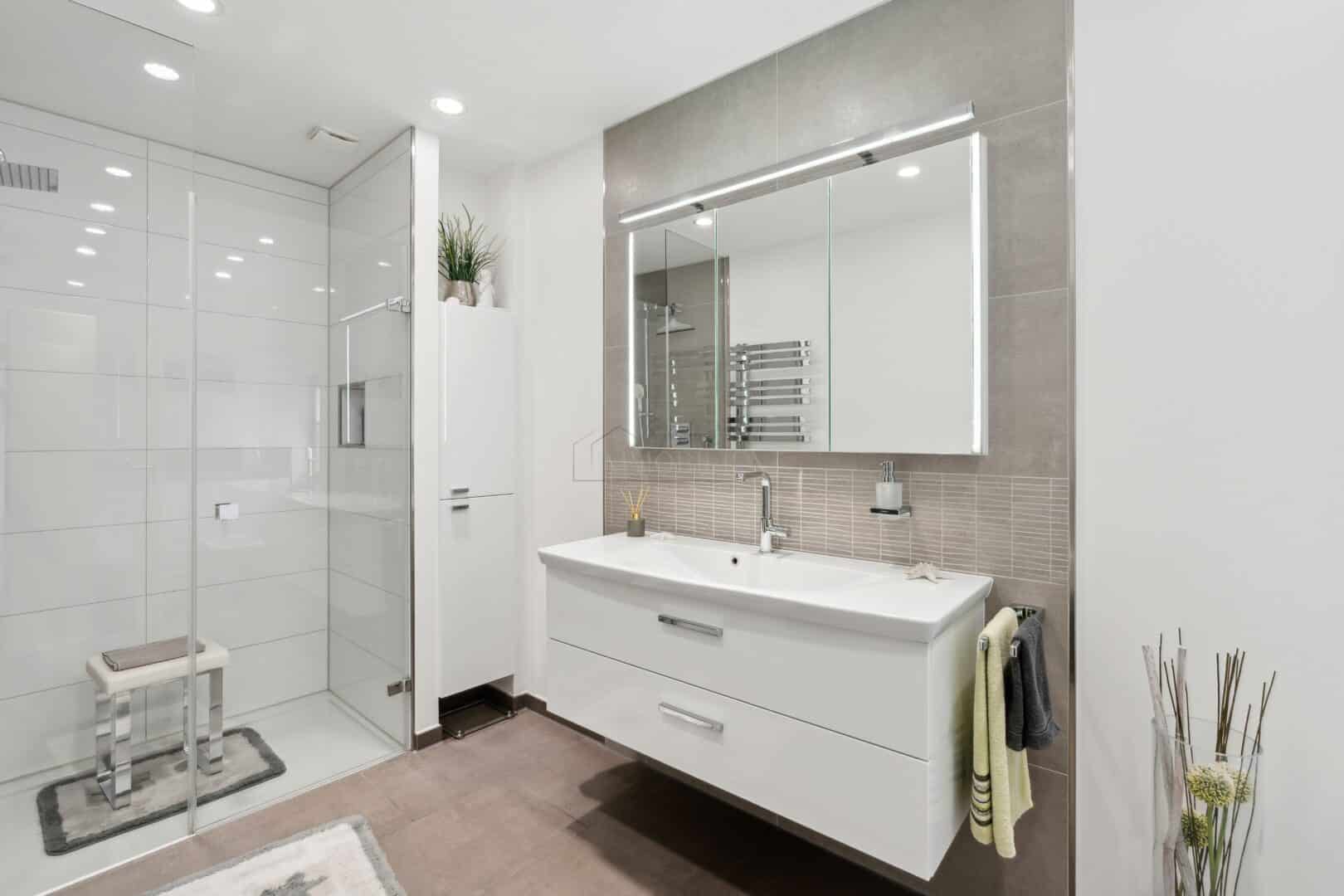 - Ein modernes Badezimmer mit knapp 9 m², ausgestattet mit Handtuchtrockner, sowie Tageslicht