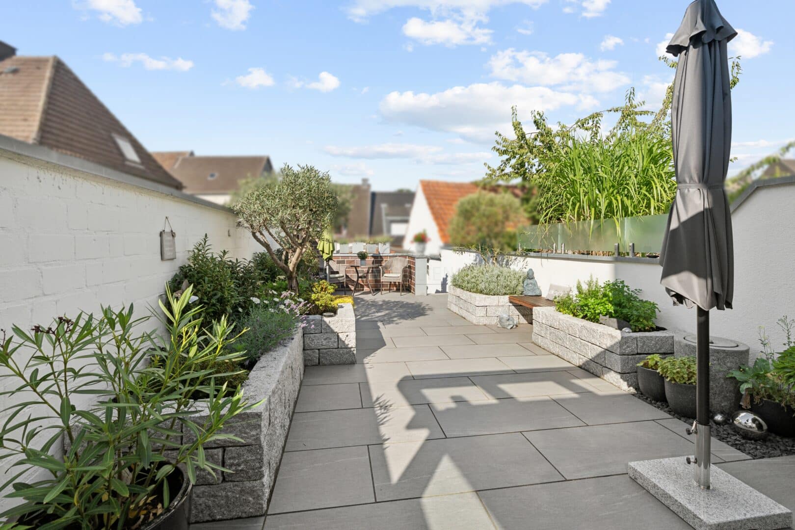 Besonders hervorzuheben ist der liebevoll gestaltete Garten, der 2020 durch einen Landschaftsgärtner neugestaltet wurde. Die überdachte Terrasse (2018), ein Carport (2015), sowie die neu gepflasterte Auffahrt (2023) runden das Angebot im Außenbereich perfekt ab.